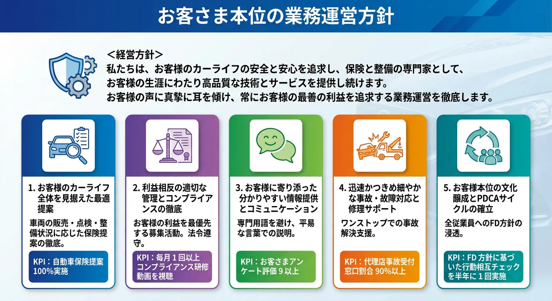 車両保険セット率 75.0%ペーパーレス計上手続き率 54.3%満期日7日前証券作成率 60.4%代理店事故受付窓口割合 87.5%